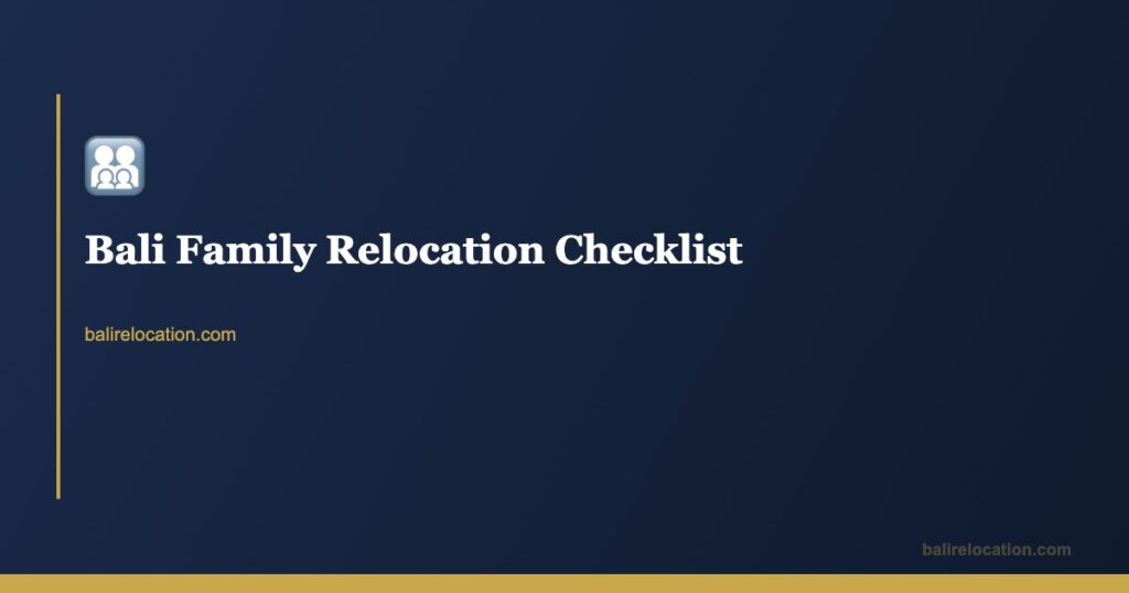 Moving a family to Bali adds layers of complexity beyond individual relocation — school enrollment timing, visa processing for multiple family members, child-safe accommodation, pediatric healthcare, and managing children’s emotional transition. This checklist addresses every family-specific task organized into a 90-120 day timeline that coordinates the many moving parts of a family relocation.